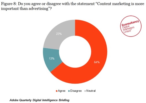 Marketing Pilgrim shared some interesting insight and results form the latest Quarterly Digital Intelligence Briefing from Econsultancy and Adobe. The results include some interesting perspective on advertising and content marketing from marketing professionals around the US.